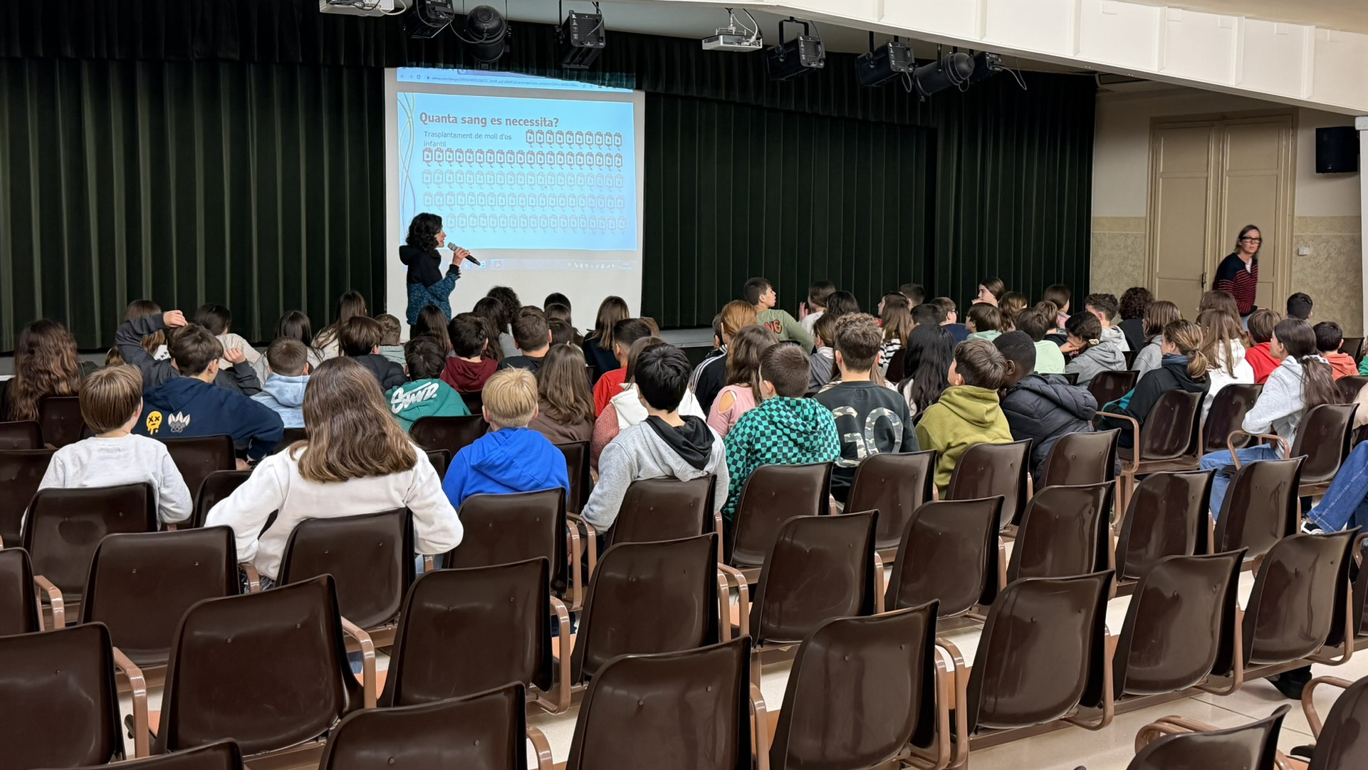 Finalment van anar pujant un a un a l’escenari i així van conformar la foto de grup, per cantar una bonica cançó “Serem més forts”. Les tutores van adreçar unes sentides paraules a l’alumnat i a les seves famílies, i les famílies delegades van lliurar uns obsequis a les tutores.